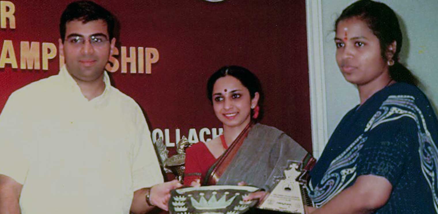 M R Sangeetha receiving Prize from Padma Vibhushan Awardee Former World Chess Champion , The Chess God of Indian Chess , Super Grand Master Viswanathan Anand and his Wife Mrs. Aruna Anand