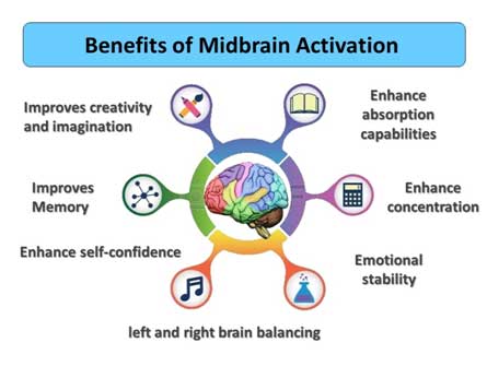 Midbrain activation is the hottest topic now. When we were kids, we read about super powers that we can see behind the wall. We have also seen in movies that a Kung – fu master can steer anything with his blindfolded eyes. Midbrain is a part of brain that included controlling function.